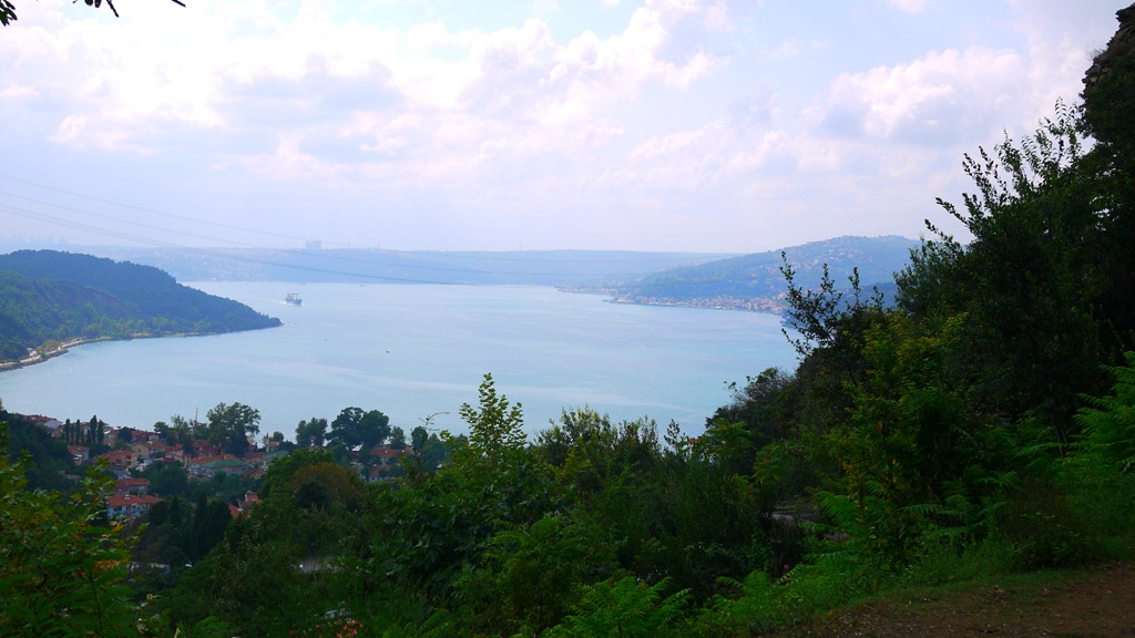 After a rooftop breakfast this morning, I walked the edge of the Sea of Marmara into Istanbul’s port of Eminonu where I took a a cruise along the Bosphorus Straight. With Europe on my left and Asia on my right, the view of this inter-continental city was stunning: pastel unit buildings jammed along the ridges as far as the eye could see and mosque minarets piercing the skyline. The modest ferry plodded it’s way under epic bridges and between container ships, submarines and cruise liners, past many of Istanbul’s famous sights, to a village called Anoadolu Kavagi near the entrance to the Black Sea.