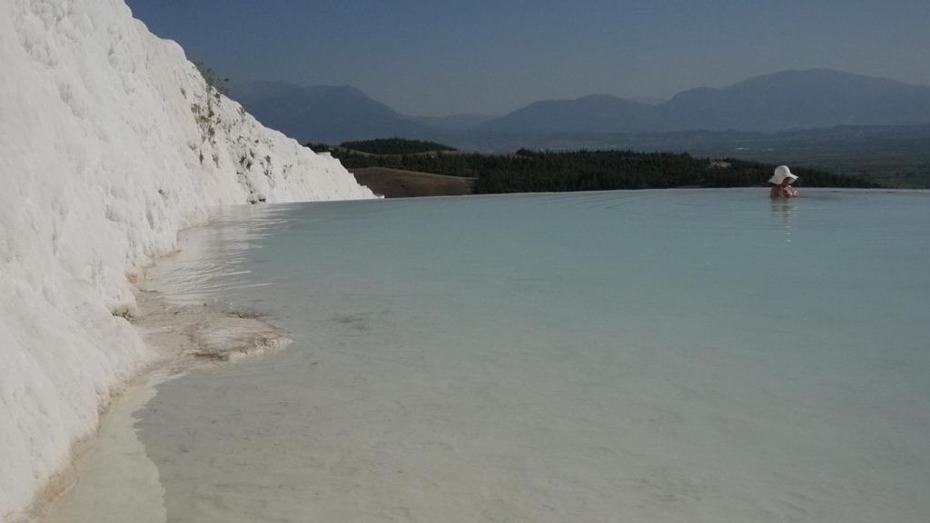 After taking a morning bus, I spent today sitting in the limestone baths of Pamukkale and admiring the gleaming white formations that cascade down from Hera Polis (the ancient city of Hera). With me were three Australian girls, who were backpacking Europe in their gap year. Alex, Aidi and Nicole proved to be fun, intelligent and familiar company, making an afternoon in the pools seem like a girly getaway. (Much needed after a few days of wandering alone and being in my own head).