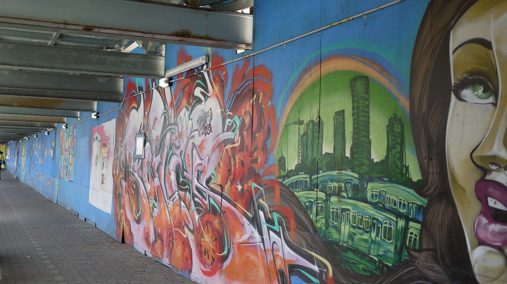 • George Street (Roma Street end) for  a bit of street art, backpacker vibe and pub patrons.