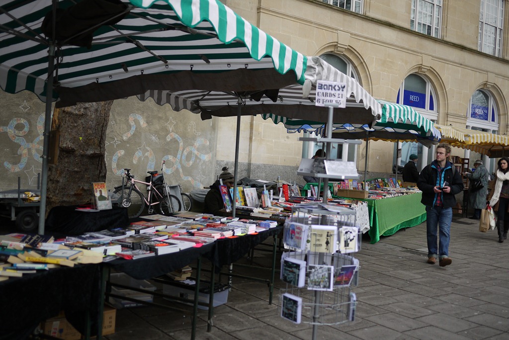 Bristol Book Market at St Nick's Market Bristol UKSunday roast  and cider at Start The Bus, Bristol UK