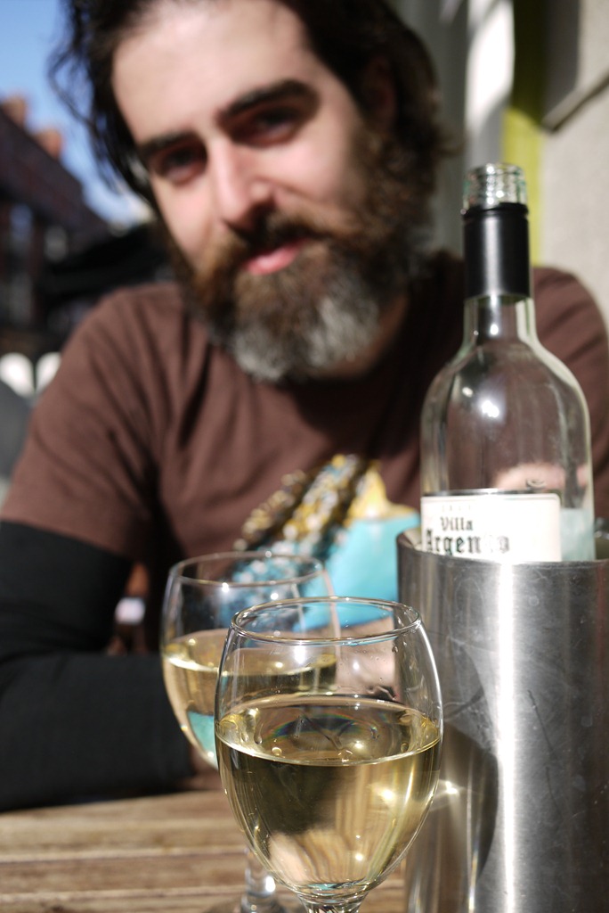 1500: Scout the surrounding blocks and end up at a table in the sun with a bottle of wine to share with my fella.