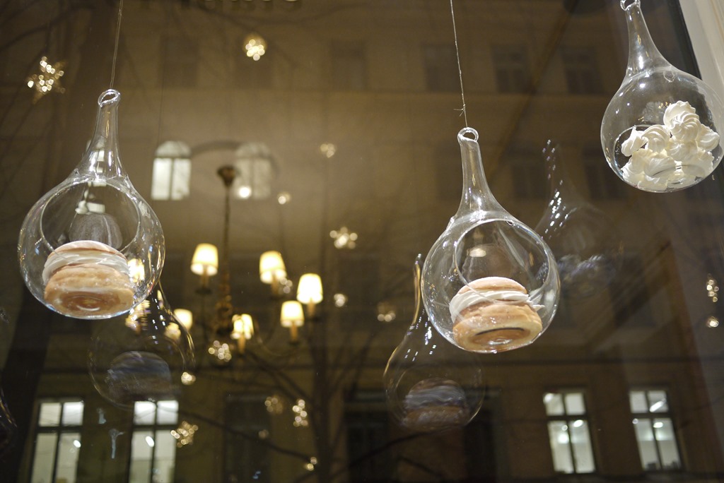 Eating Semlas on an icy day in Stockholm, Sweden.