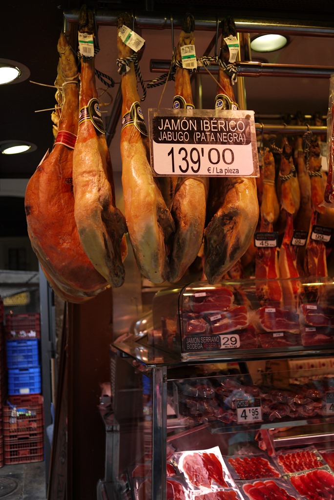 The hanging leg of meat is pork, the staple meat of Spain. I believe it is cured and served in thin slices. The meats here are delicious and served with pride. It is quite a delight.