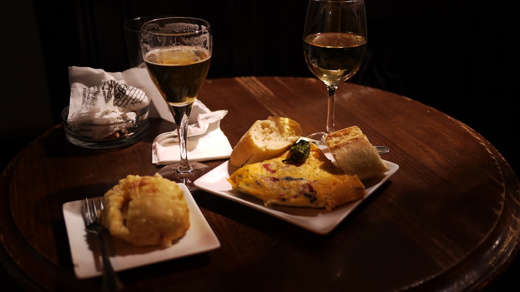 Savour: cold drinks served with lemon; spicy chorizo too good to stop; big fat sweet tomatoes of red and green; white asparagus and green olives; hard cheese with a bitter edge; and quality vino that’s cheaper than water.