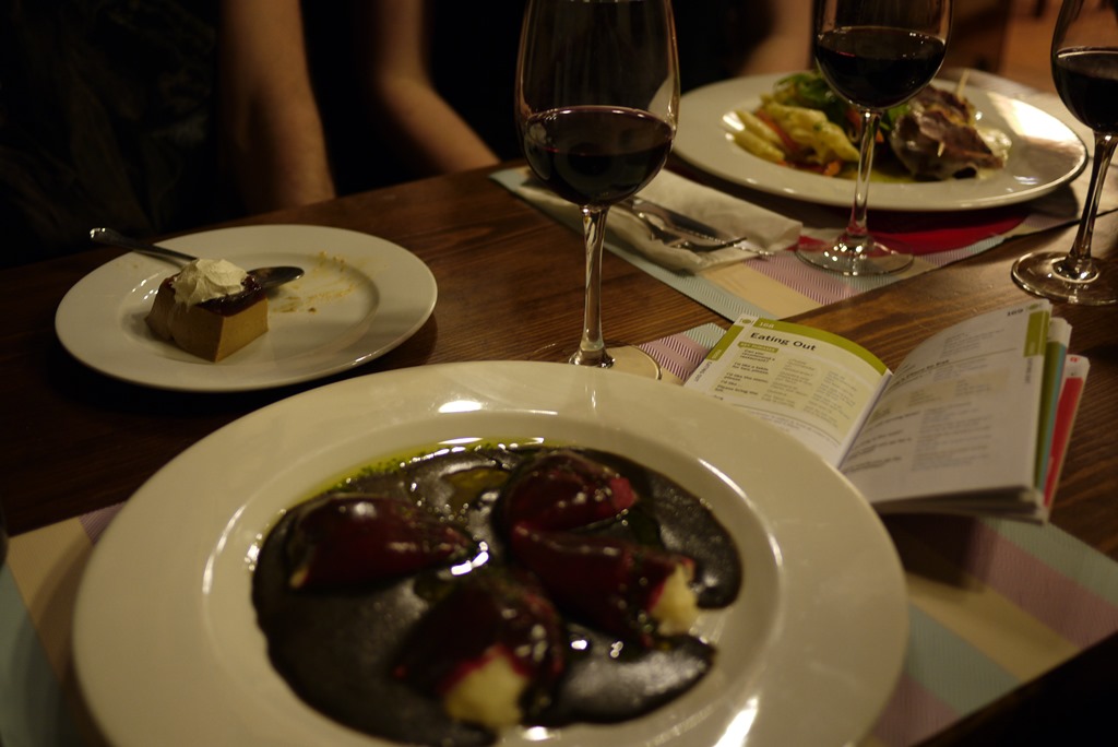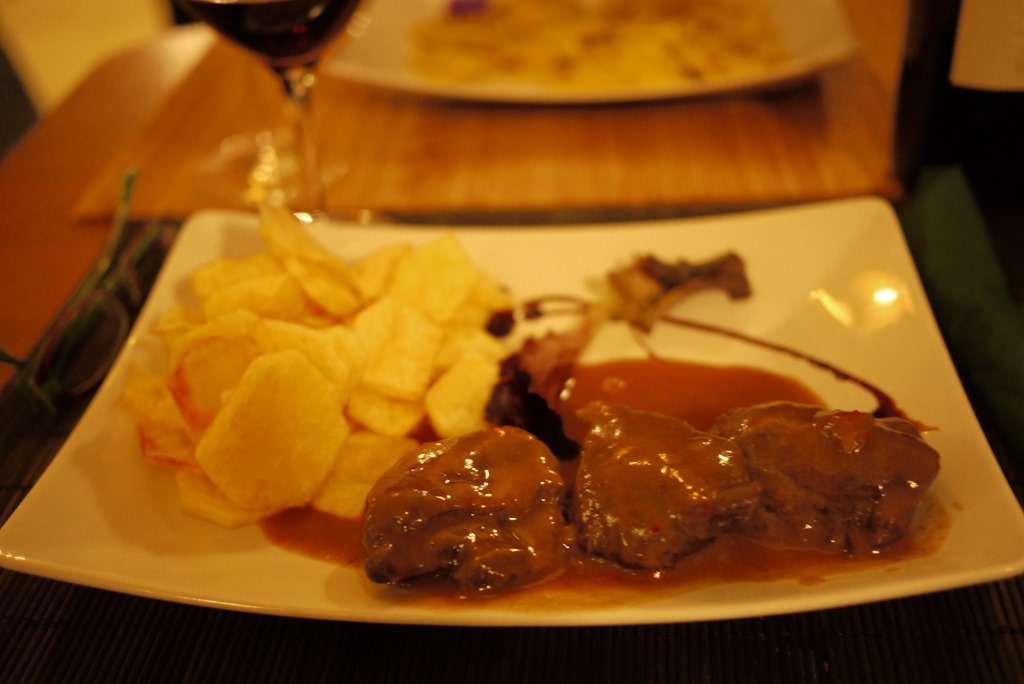 Lamb and potato chips, Spain foodLamb potato and peppers , Spain foodPasta, wine, chocolate and grapes - Spain foodLasagne and white wine -  Spain foodWhite chocolate drink, te and cafe