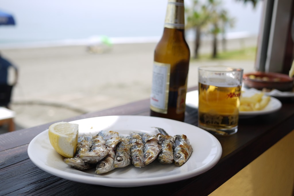 Snack on marinated mushrooms, prawn and asparagus omelettes, and freshly-caught sardines that you bite straight from the spine.Fresh sardines BBQ on the Mediterranean  - Spain Andalusia