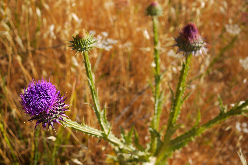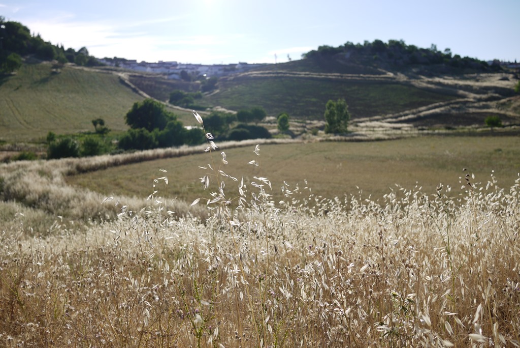 Along the way is a quaint Spanish villa on the right, which is complete with vegetable garden, a well and an old man in his blue and white striped boxer shorts. The roadside path is edged by swishing honey fields, cactus plans that span meters in all directions, bright purple thistles, giant dandelions and Australian gum trees that reminded me of home.