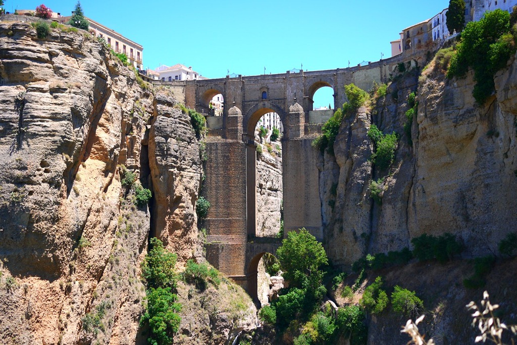 Starting in the new city centre, make your way over the ‘famous ‘new bridge’ (also known as Puente Nuevo), which spans the chasm known as El Tajo. Contrary to what the relative name suggests, Puente Nuevo was built quite a while ago, in 1734 to be precise. This impressive structure towers more than 100 metres above the canyon floor and can be found on the cover of most Ronda tourist brochures…as well as in the gap linking the new city and old city.