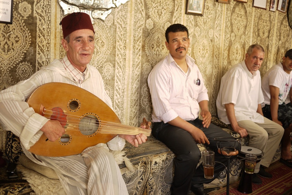 But my favourite find of my medina wanderings was a little white-washed cafe just outside the Kazbar Museum. It was there that I drank mint tea next to a sleeping cat and listened to local men play local music with oud and drum.