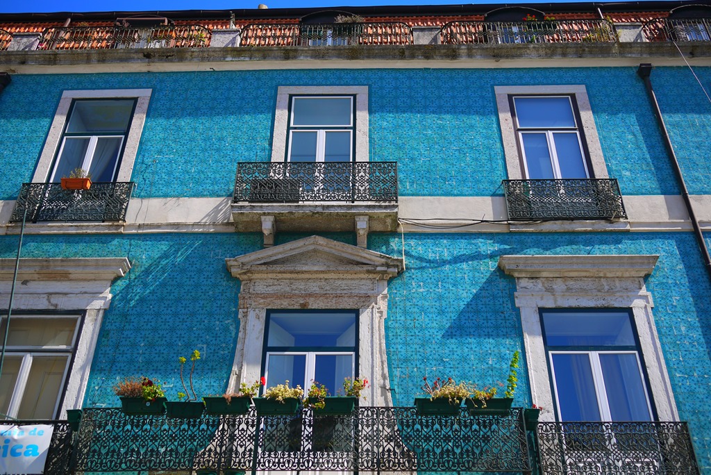 Unlike  any other place I’ve visited, Lisbon has many buildings with tiled facades, known as azulejos. The oldest tile designs are the blue and white depictions, which are detailed and soft in comparison to the modern bold designs. The geometric patterned tiles are known as alicatado  and are similar to those seen in mosques and Islamic palaces across the world.