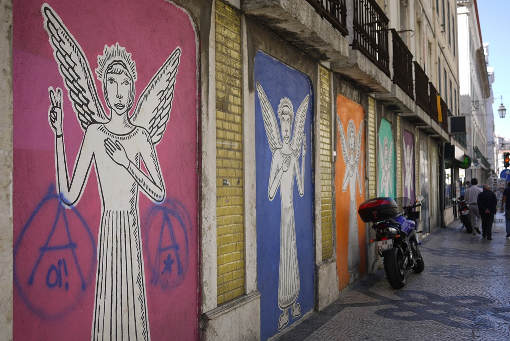 Underfoot are shiny black and white paved waves and swirls traditional to Lisbon streets. Graffiti also plays a happy role on Lisbon street walls, with the local authority embracing the cultural movement and commissioning artworks across the city.