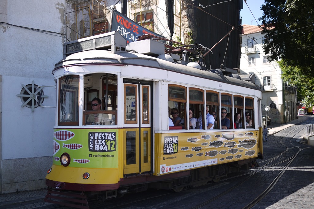 Oh the joys of a little yellow retro tram winding through cobbled streets, past colourful buildings, packed with grocery-laden locals.