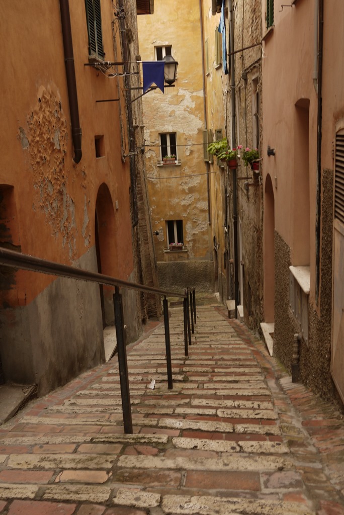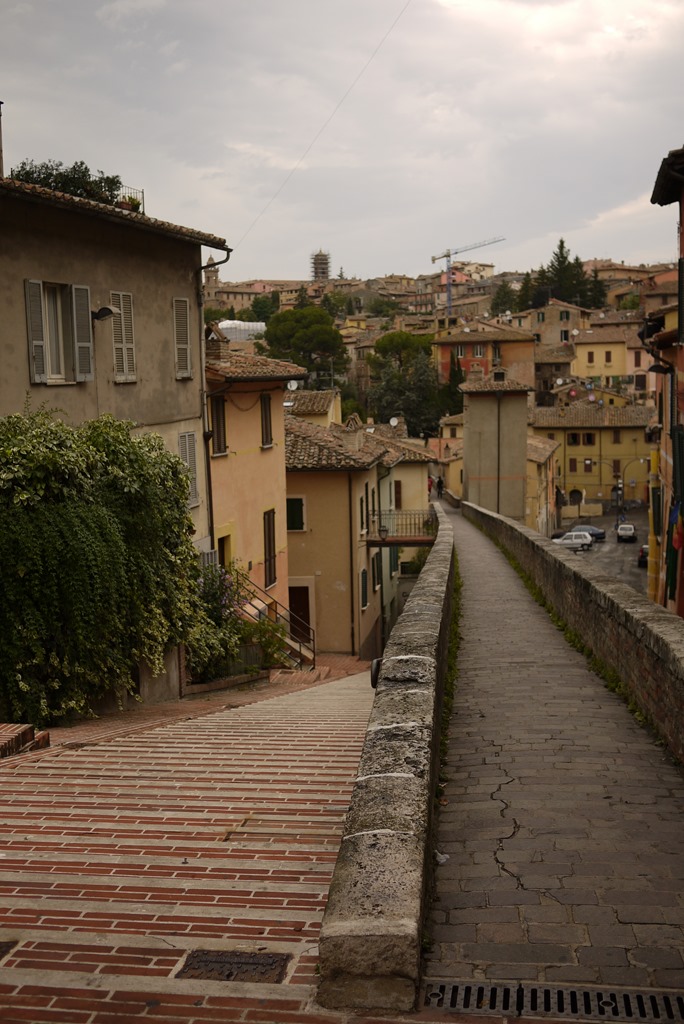 The walled city wears potted flowers, balcony herbs and scrambling vines with an old-world elegance that fits my cinematic ideals of central Italy. I spent evenings exploring the delightful nooks and alleys with a camera in hand. Walking the city is a matter of ascending and weaving through narrow lanes, under stone arches and across modern ramps. There are wide but shallow steps that scale the old town edges and rows of cafes that dress the central streets.