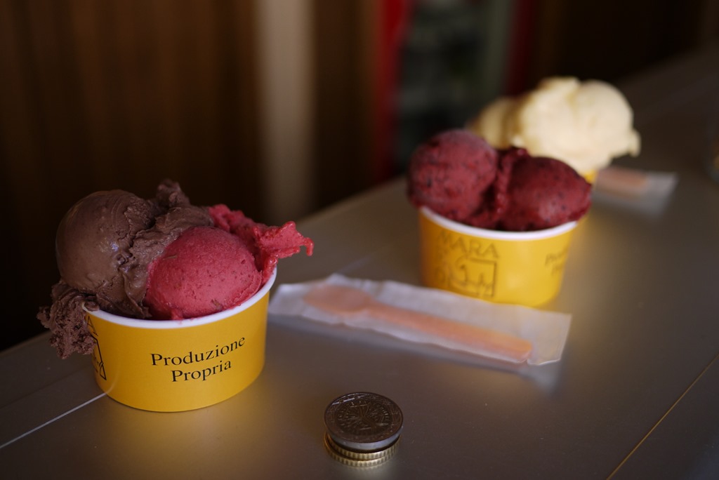 Hard cheeses and pepperoni from the local deli. Killer affogato from the gelataria near the historical centre look out.