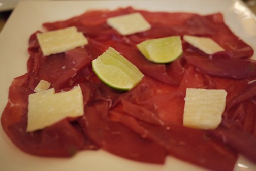Bresaola with lime and parmesan. Travel food photo Italy - Bologna
