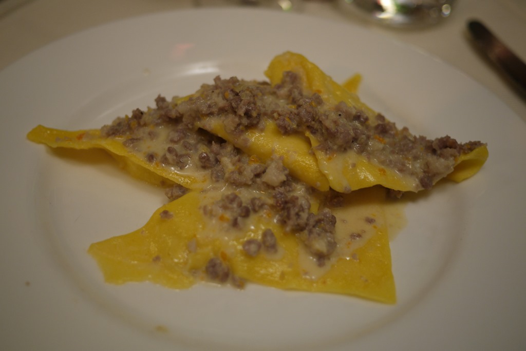 Slow cooked pork cheek with Modena balsamic (from the neighbouring town and home of Balsamic Vinegar), beef ragu, green pasta lasagne and beef Carpaccio.
