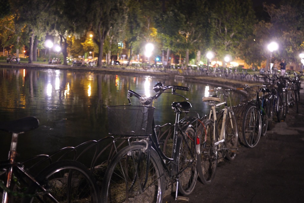 • The garden of Fortezza de Basso, which is a compact green space near the Santa Maria Novella train station. The park has a buzzing night scene of local films and general park merriness, revolving around a pond and a little bar. Although a little out of the historical centre, a local tip sent me exploring there after dark. I found quite a crowd, an Italian documentary about miners (from what I could gather) and some musicians on the grass. It is free to wander in and join the fun and you can bring your own drinks and food, or order from the bar which serves beer for 3 Euros and Spumante for 3.50.