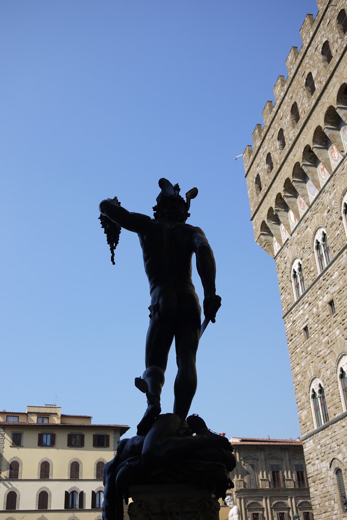 • Plaza Della Signoria, the old political centre of Florence where, among fountains and statues and grand historical buildings, you can find the Loggia Dei Lanzi, a purpose-built political assembly point which now houses an emotive collection of sculptures for free public enjoyment (including a bronze Persus who has just slain Medusa and a taut Hercules killing a centaur). The week I visited there was also a remarkable mime working in the area (who was carrying women with roses in his mouth, stealing bicycles and drawing in a crowd of hundreds).