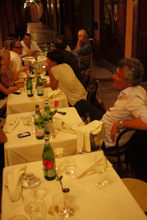 We were seated outside in the balmy Italian night at a tastefully dressed table, beside cheery diners. Bubbles were poured without a word. The menu was presented orally, translated for our benefit. Red wine was poured to match our plates. From the start, this was an effortless dining experience that made me relax in my chair.