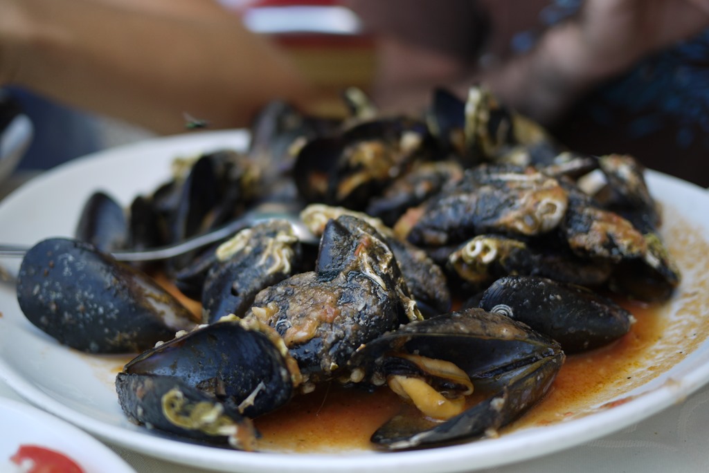 Anchovies, sardines, peppered tuna steaks, grilled squid and plates of mussels in tomato were among the most delicious dishes.