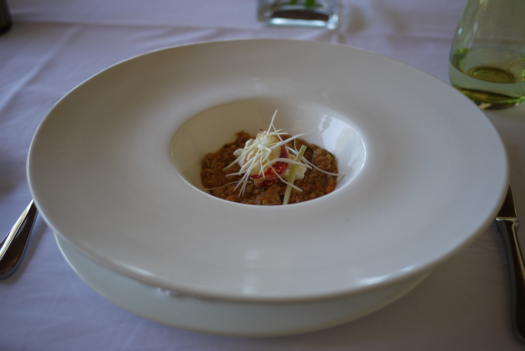 Crab ragu with lobster and sheep yoghurt soon followed before a main of local lamb rump, potato fondant and pickled beetroot with melon puree and red wine jus. Oh dear it was good!
