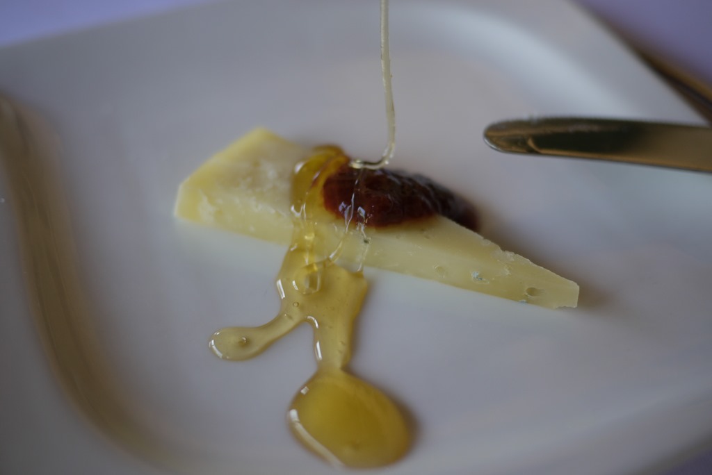 Dessert was a creamy almond and honeycomb semi-freddo with mint sauce, before a platter of local cheeses and honeys. Of course, we ordered wines to match each course and espresso to end the three-hour experience.