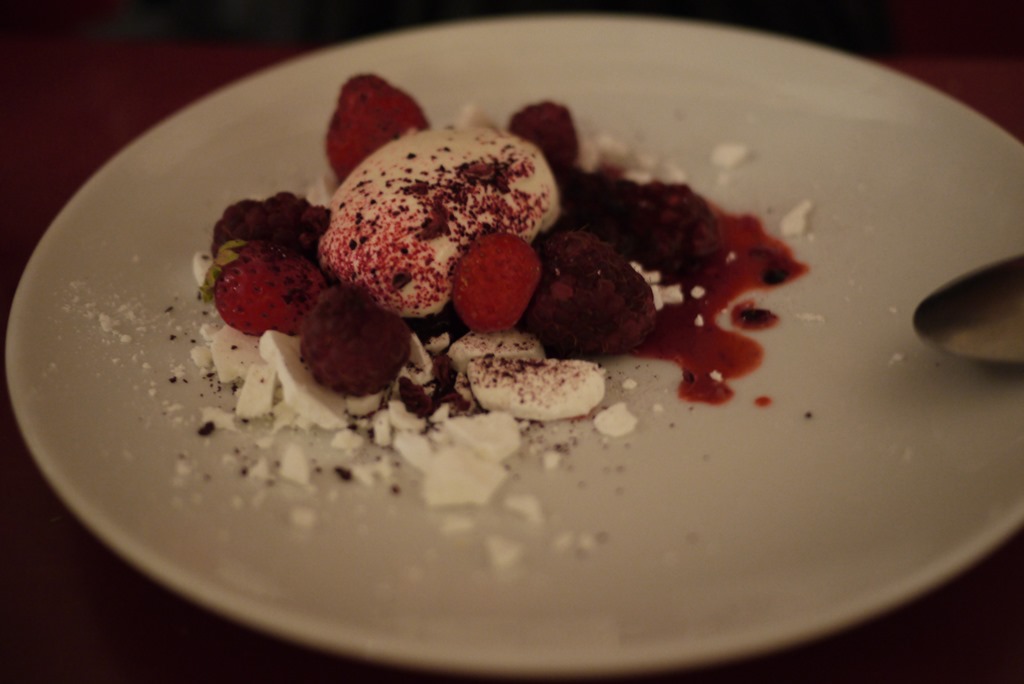 And… for a sweet end-of-eve treat, chocolate mousse, berries and meringue .